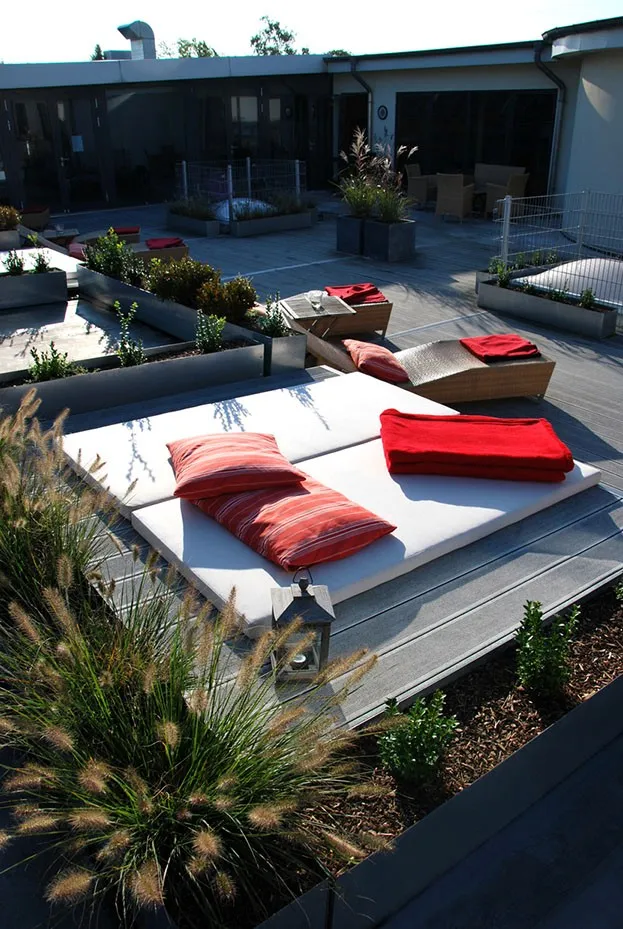 Genieße pure Erholung in unserer Saunalandschaft oder auf dem idyllischen Dachgarten – perfekt, um nach dem Training abzuschalten.